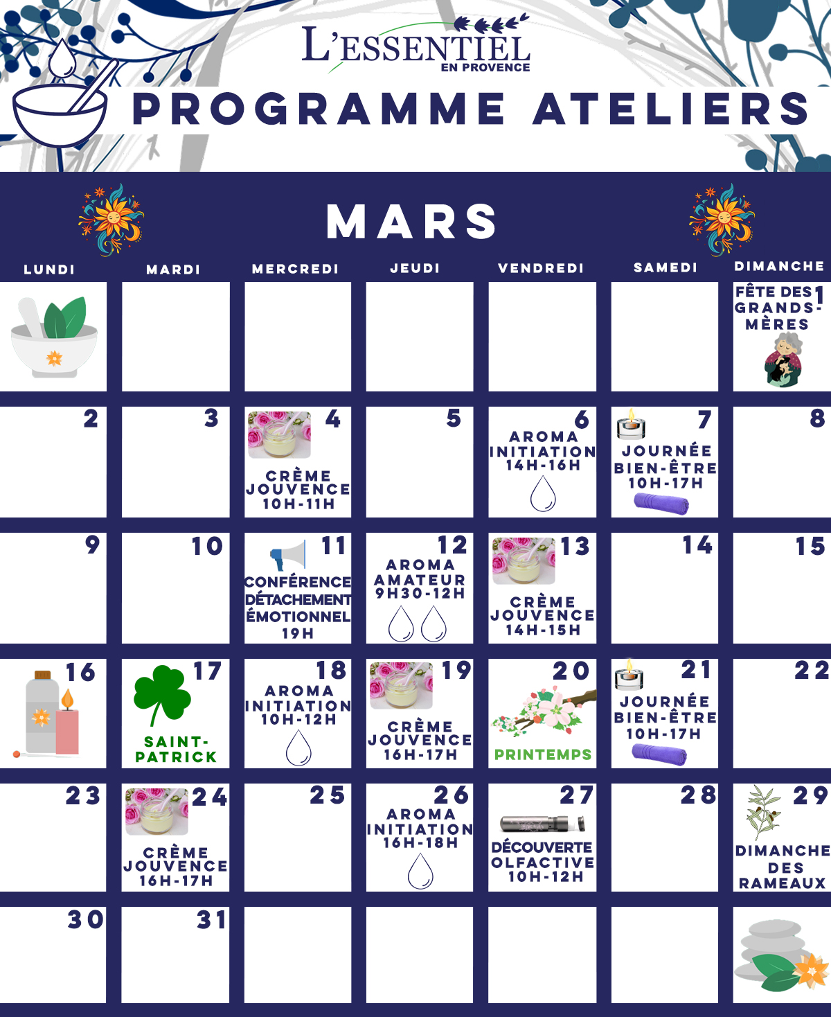 Entre bien-être, aromathérapie et ateliers créatifs, profitez de ce mois pour prendre soin de vous et découvrir de nouvelles expériences naturelles.